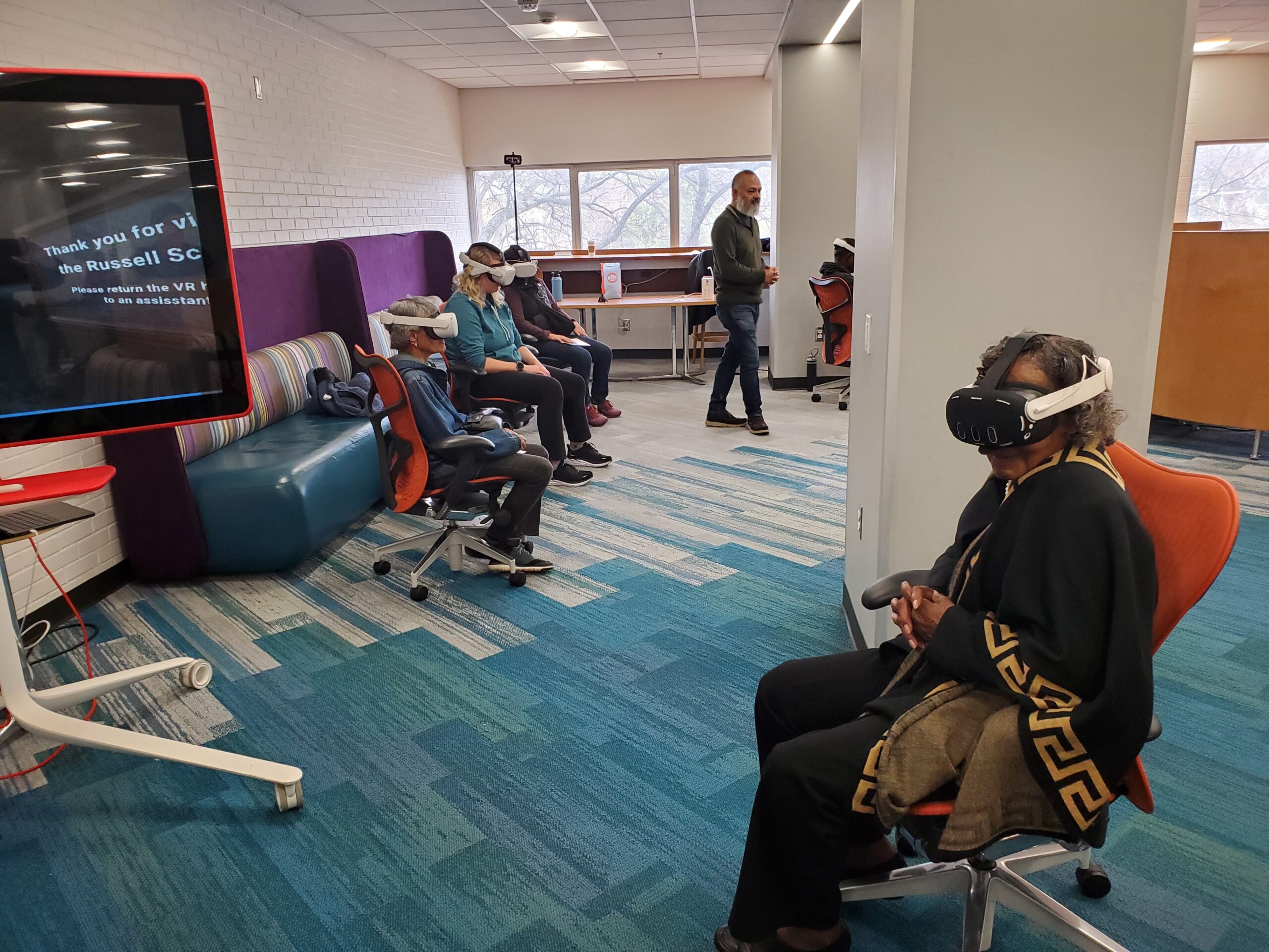 - Guests take a virtual tour of the Historic Russell School with audio commentary from community members using virtual reality headsets in the DH Hill Library’s VR Studio at NC State University